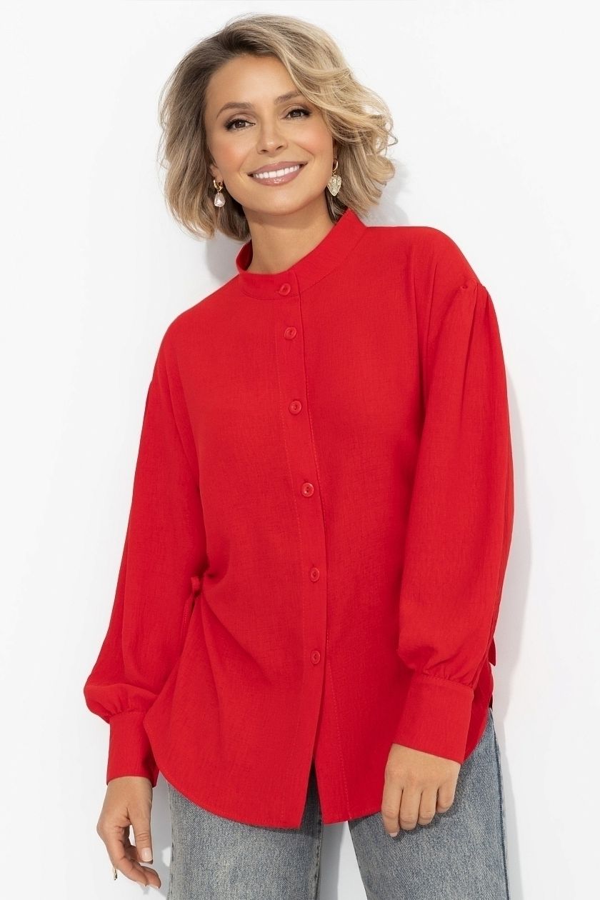 Рубашка красная с акцентной спинкой и сборками
