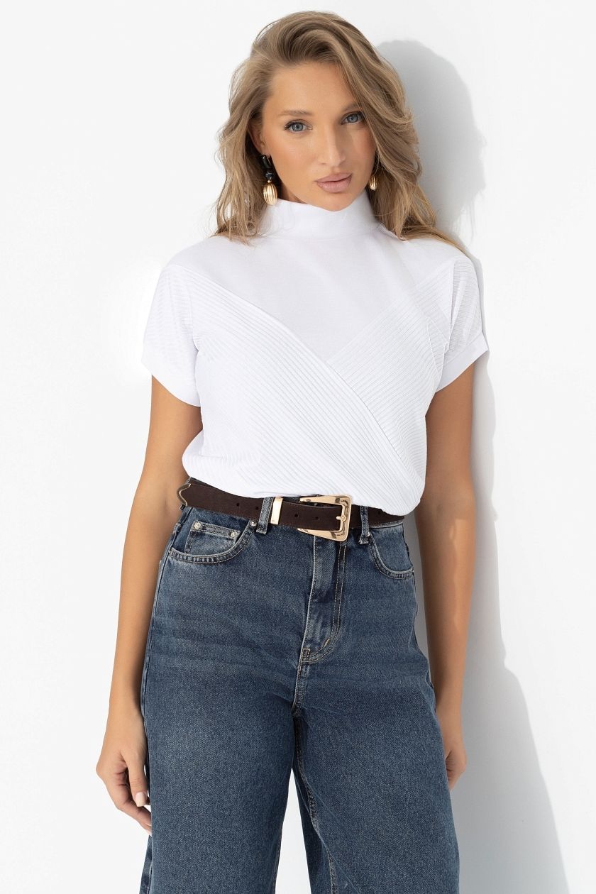 Водолазка белая из фактурного трикотажа от компании Charutti. Модель свободного силуэта, воротник-стойка. Короткие рукава. Это Ваш отличный образ, в котором вы всегда чувствуете себя уверенно.