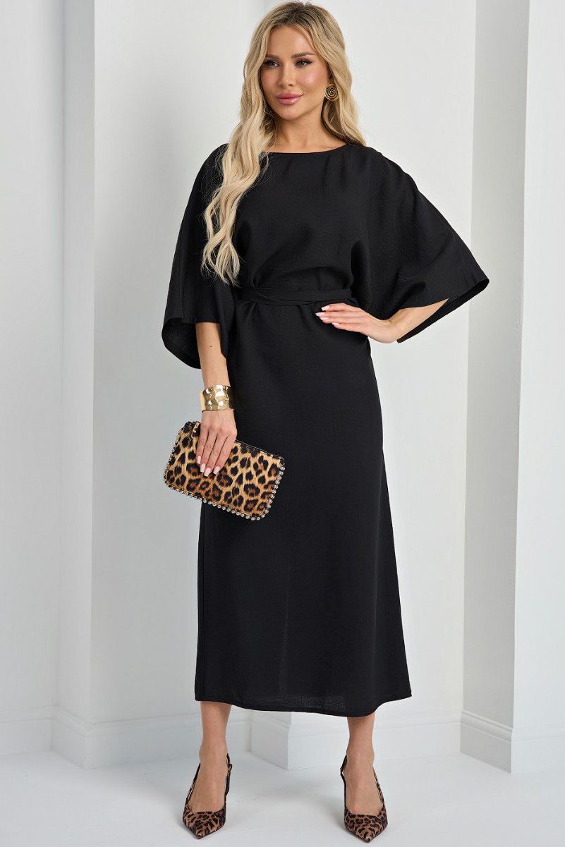Платье длинное чёрное с поясом