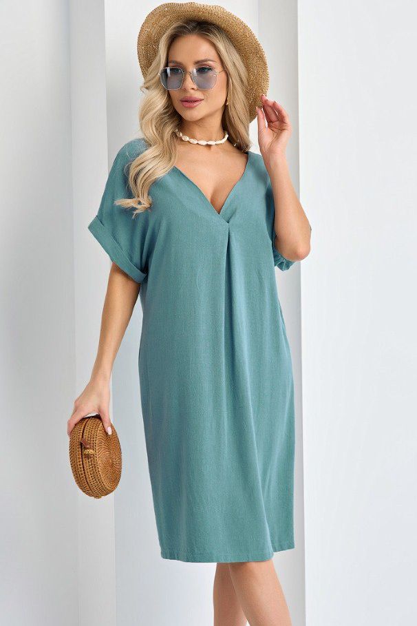 Платье льняное серо-голубого цвета
